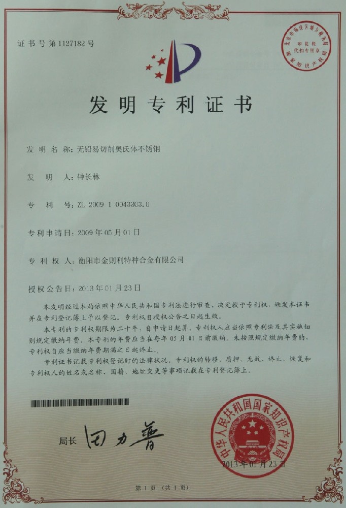 衡陽市金則利特種合金股份有限公司成立于一九九九年十二月,注冊資本人民幣兩千兩百萬元。注冊地址:衡陽市雁峰區(qū)白沙洲工業(yè)園長塘路2號(hào)。公司主營耐蝕軟磁合金,為湖南省高新技術(shù)企業(yè)。公司自成立以來,即致力于耐蝕軟磁合金的研發(fā)。 研制出的JL-31(00Cr13si2Pb)、JL-31B(00Cr13si2)、JL-31BS(00Cr13Si2S)、JL-37B(0Cr17Si2)、JL-37(0Cr17···
